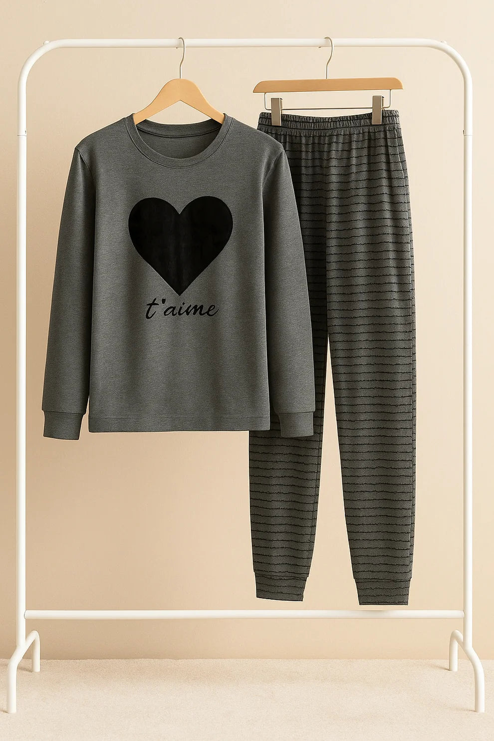 BLACK GRAY HEART NIGHTWEAR
